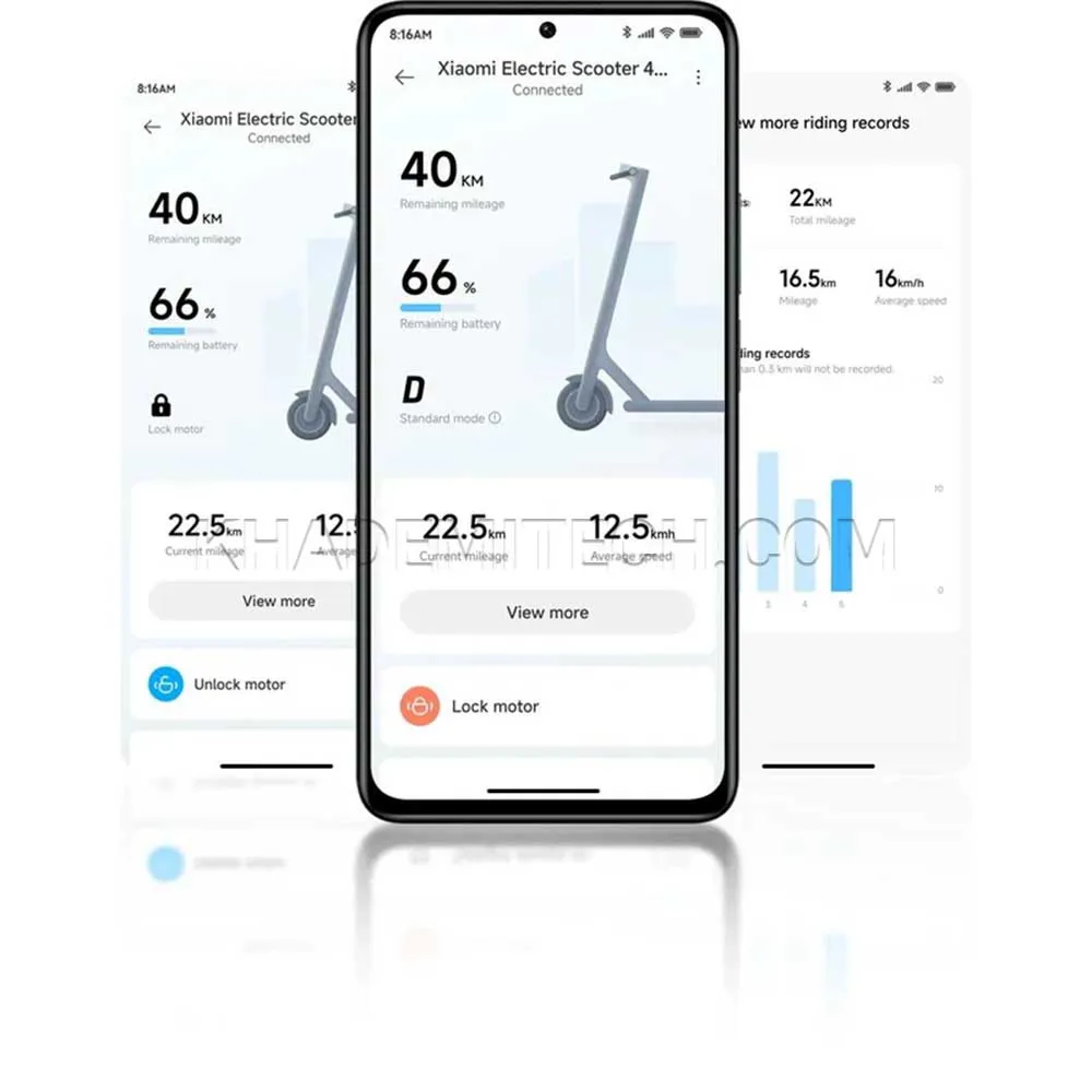 مجهز به سیستم مدیریت هوشمند باتری BMS با 6 نوع محافظت جریانترمز چرخ جلوی درام و دارای ترمز عقب eABSدارای توان حداقل 400 وات و حداکثر 1000 واتدارای سه سطح سرعت (6، 20، 25 کیلومتر بر ساعت)مناسب قد 120 تا 200 سانتی‌مترتایر تیوپلس 10 اینچی با جذب شوک بالاموتور براشلس قوی برای بالا رفتن از شیب های 22%113027814