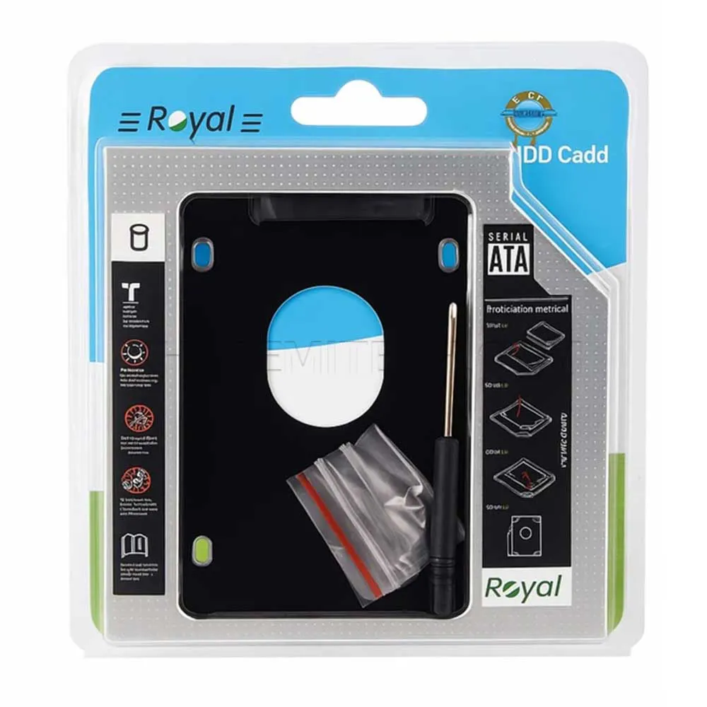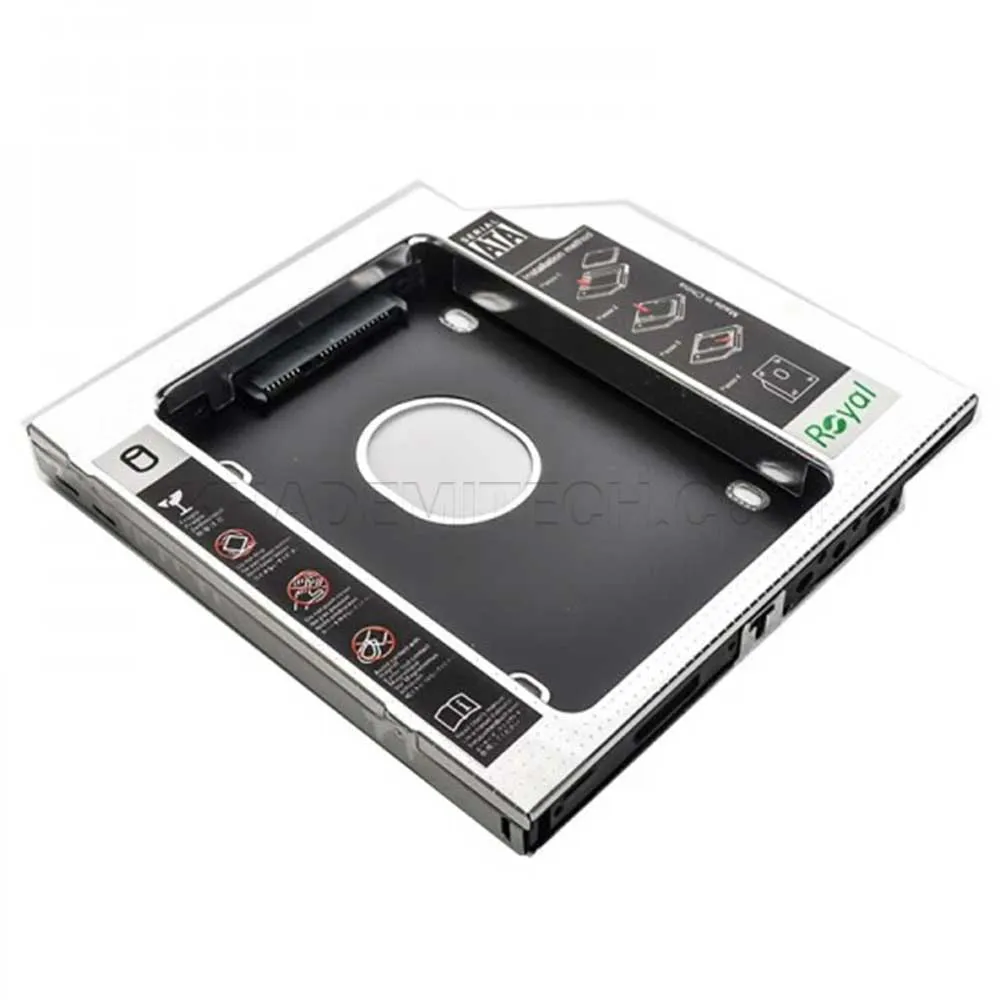 - سایر توضیحات : کاربرد: جایگزین DVD Writer برای اضافه کردن هارد یا SSD دوم اقلام همراه: پیچگوشتی کوچک + بسته پیچها این محصول یک کدی (HDD Caddy) برند Royal هست که برای نصب یک هارد دیسک یا SSD دوم به جای درایو نوری لپتاپ استفاده میشه.ش