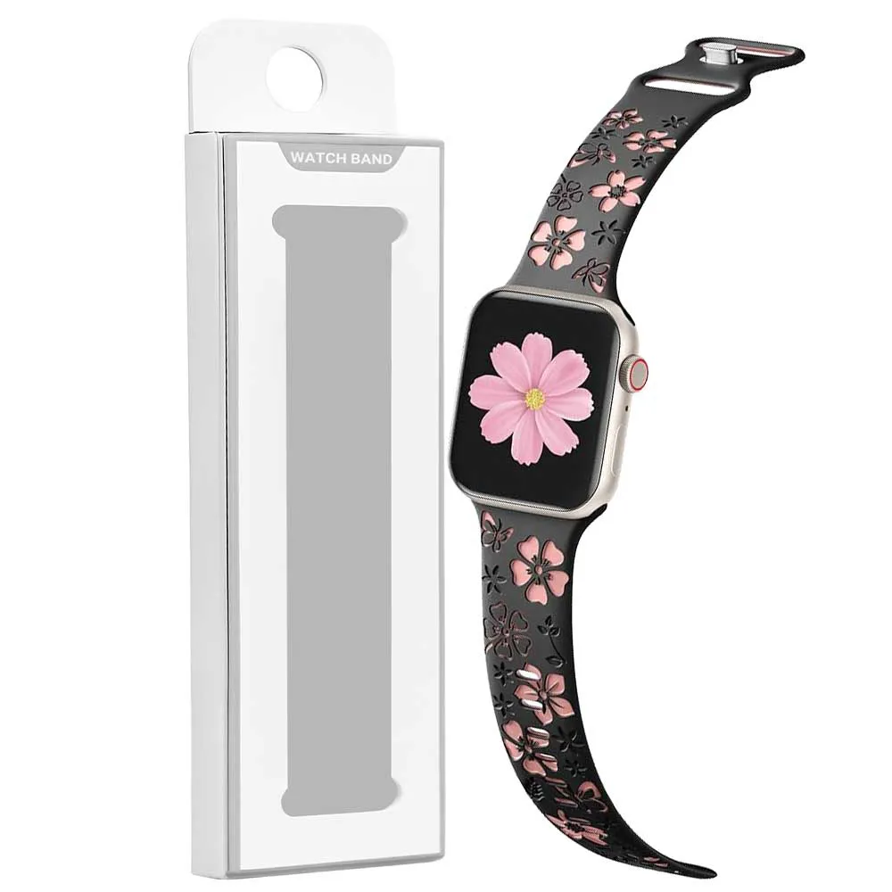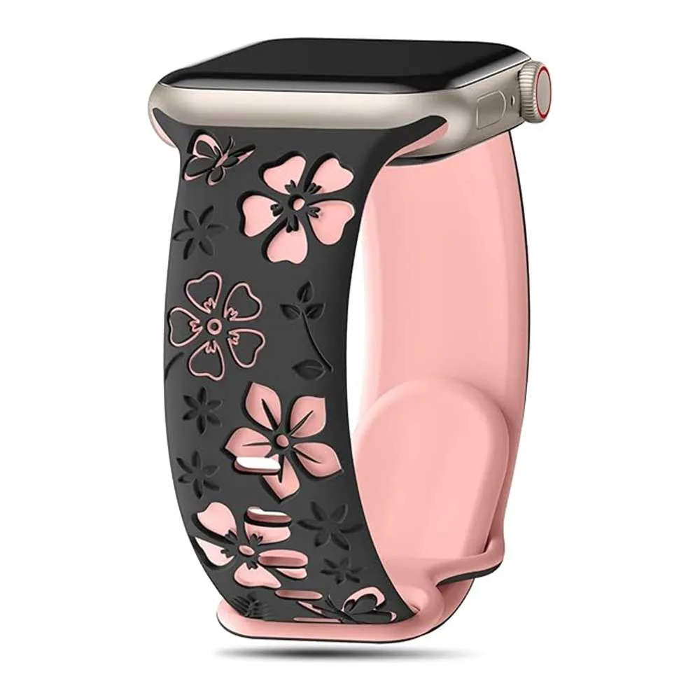 بند اپل مدل SILICON 42/44/46/49mm مشکی طرح گل | اپل3