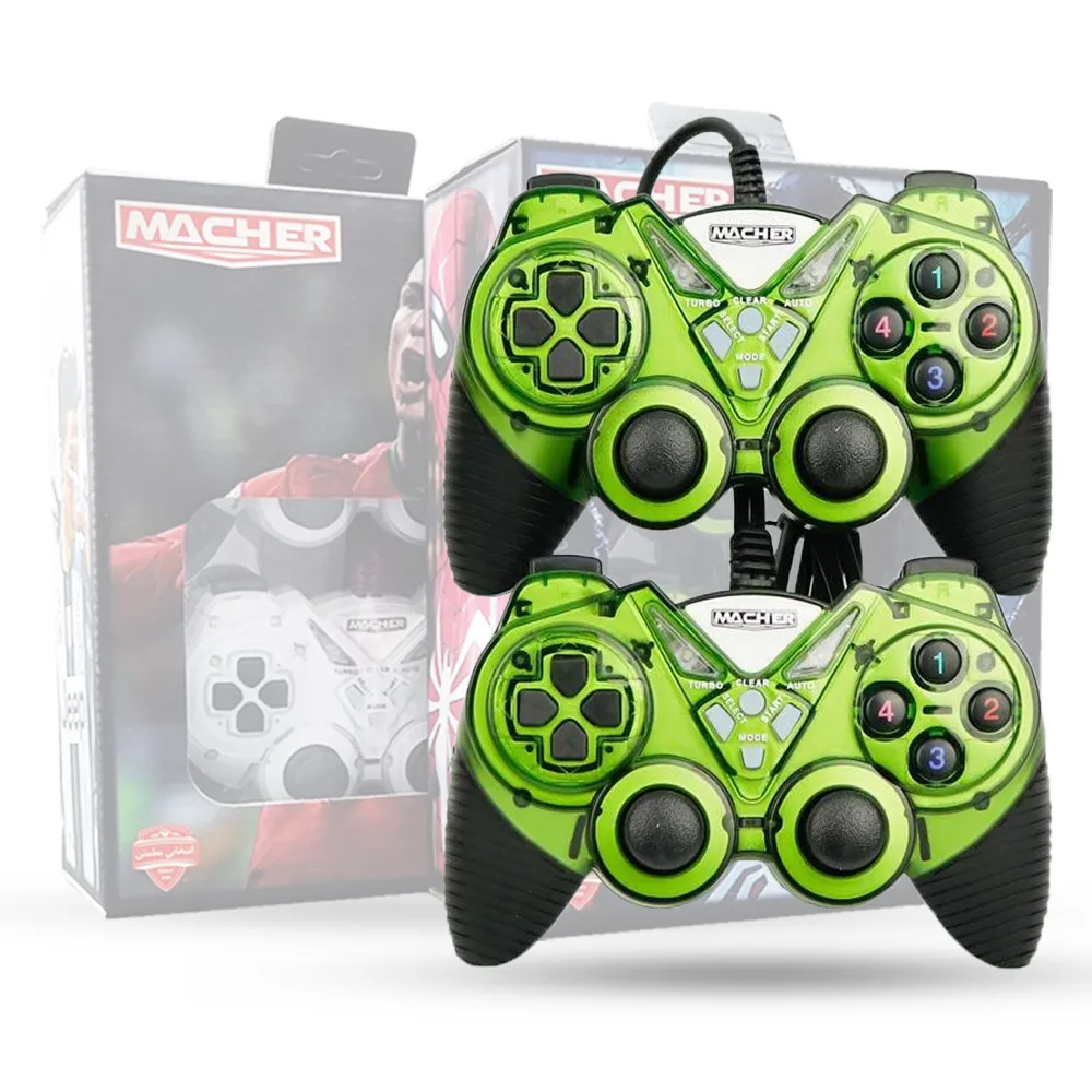 دسته بازی دوبل شوک میچر مدل MR-62در زمانه کنونی هستند افراد زیادی که به سوی بازی های رایانه ای می روند و بازی کردن با رایانه و لپ تاپ بسیار برایشان لذت بخش می باشد. یکی از وسیله های ضروری برای بازی دسته ها می باشند. این دسته ها در برند و رنگ های مختلفی در بازار وجود دارد و دایره انتخاب را برایتان گسترده کرده اند.یکی از دسته های با کیفیت مناسب دسته بازی شوک دار معمولی می باشد. این دسته از طریق کابل USB به دستگاه متصل می شود و دارای سیم بلندی است که استفاده کردن را برایتان آسان تر می کند. دسته شوک دار ساده در طرح ها و رنگ های متنوع ساخته شده که برای افراد با تمام سلیقه ها مناسب است. از این دسته ها برای کامپیوتر و لپ تاپ استفاده می شود. این گیم پد جزو دسته‌های دارای ویبره یا اصطلاحا شوک‌ دار است که دارای موتور‌های لرزاننده هستند تا لذت و هیجان بازی بیشتر شود. بر روی این دسته ها دو اهرم شوک طراحی کرده اند که باعث انتقال هیجان بیشتر در بازی می شوند.