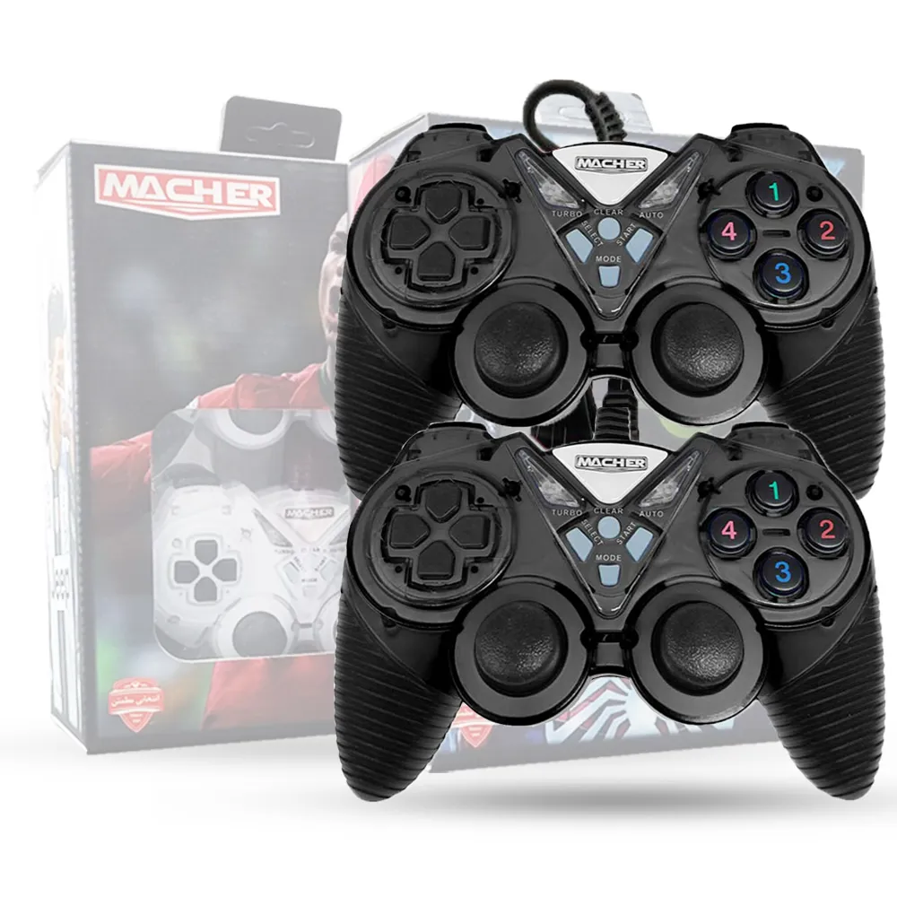 دسته بازی دوبل شوک میچر مدل MR-62در زمانه کنونی هستند افراد زیادی که به سوی بازی های رایانه ای می روند و بازی کردن با رایانه و لپ تاپ بسیار برایشان لذت بخش می باشد. یکی از وسیله های ضروری برای بازی دسته ها می باشند. این دسته ها در برند و رنگ های مختلفی در بازار وجود دارد و دایره انتخاب را برایتان گسترده کرده اند.یکی از دسته های با کیفیت مناسب دسته بازی شوک دار معمولی می باشد. این دسته از طریق کابل USB به دستگاه متصل می شود و دارای سیم بلندی است که استفاده کردن را برایتان آسان تر می کند. دسته شوک دار ساده در طرح ها و رنگ های متنوع ساخته شده که برای افراد با تمام سلیقه ها مناسب است. از این دسته ها برای کامپیوتر و لپ تاپ استفاده می شود. این گیم پد جزو دستههای دارای ویبره یا اصطلاحا شوک دار است که دارای موتورهای لرزاننده هستند تا لذت و هیجان بازی بیشتر شود. بر روی این دسته ها دو اهرم شوک طراحی کرده اند که باعث انتقال هیجان بیشتر در بازی می شوند.