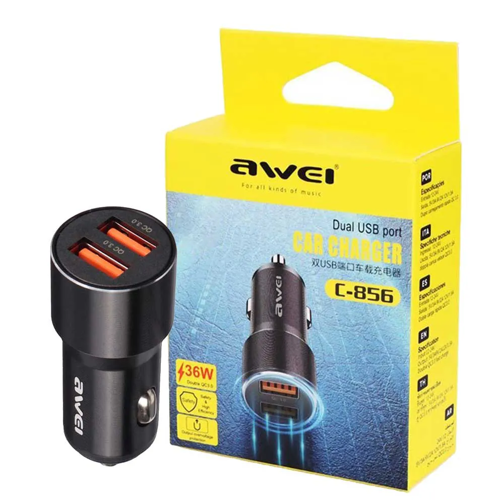 شارژر فندکی اوی مدل AWEI C-856 36W 2Port مشکی | اپل3