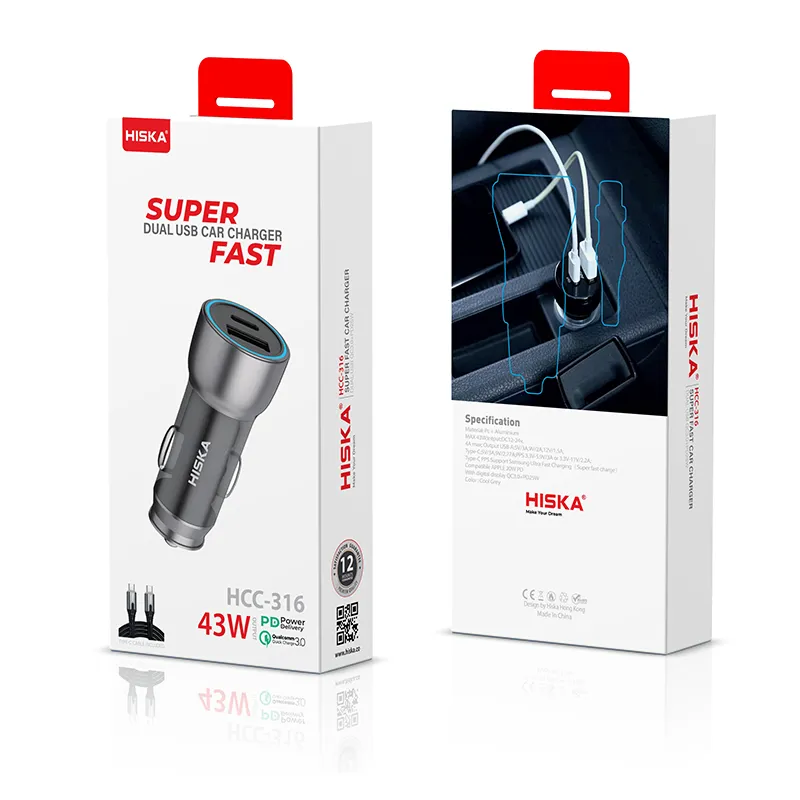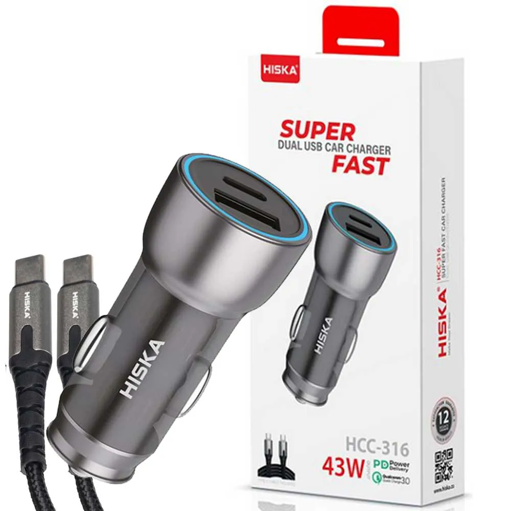 شارژر فندکی هیسکا HISKA HCC-316 TYPE-C PD | اپل3