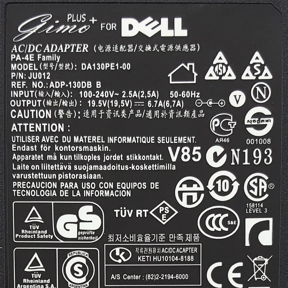 شارژر لپ تاپ دل Slim Dell 19.5V 6.7A | اپل3