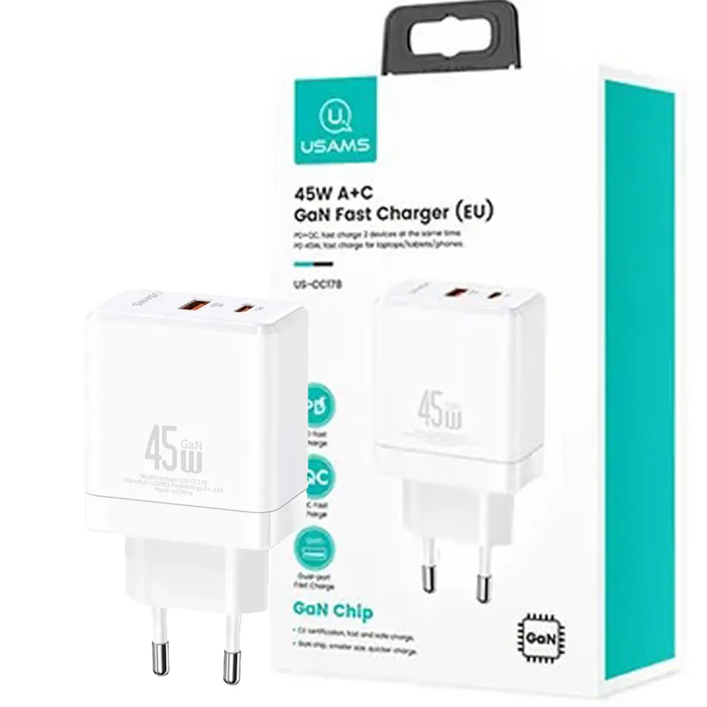 کلگی شارژر یوسمز مدل CC178 45W Usams سفید | اپل3