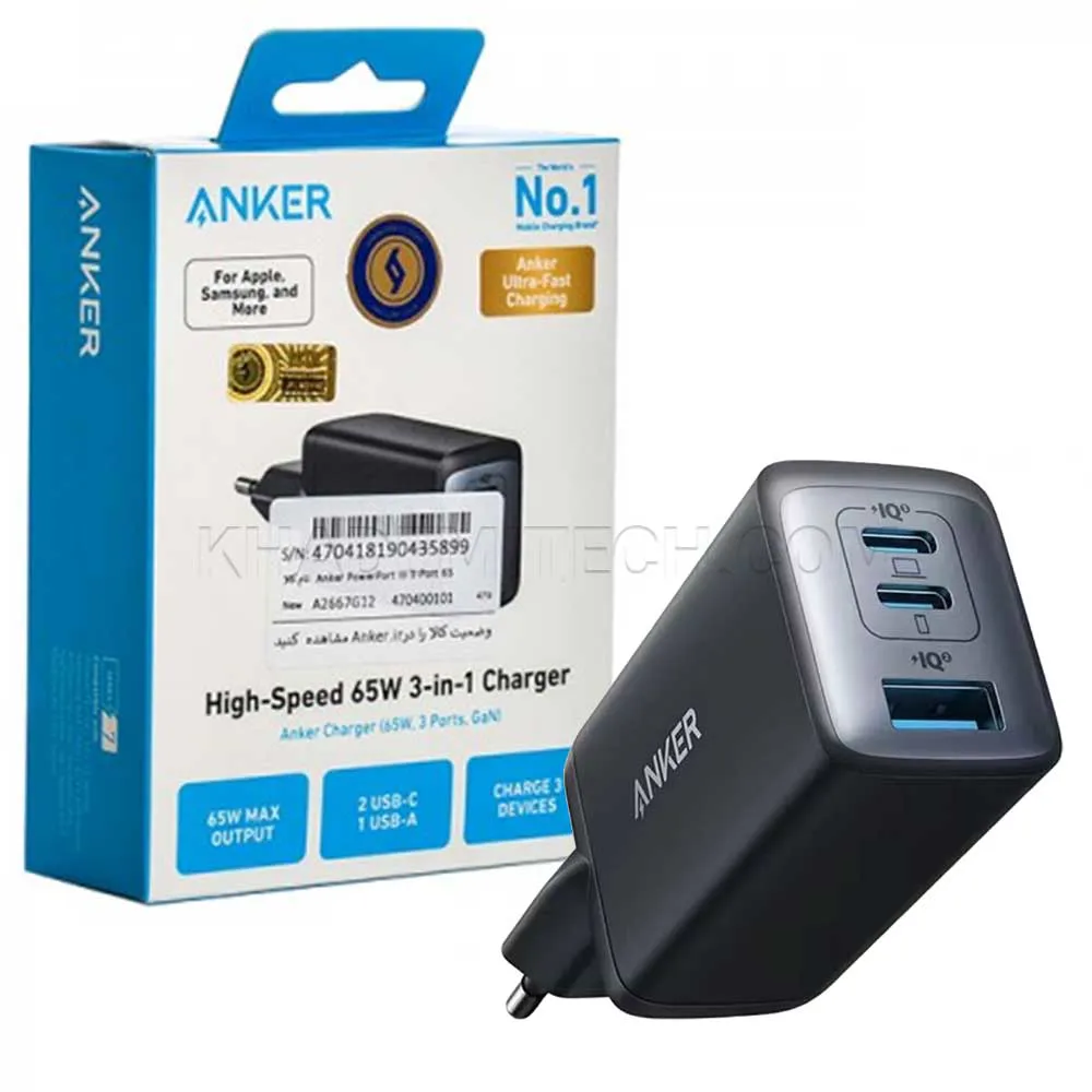 کلگی شارژر انکر مدل ANKER A2667G12 PD 65W مشکی | اپل3