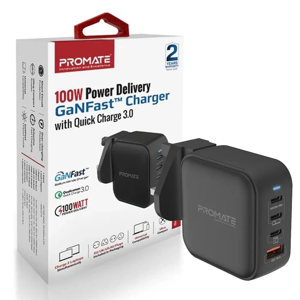کلگی شارژر پرومیت مدل PROMATE GANPORT4-100PD.Black 100W مشکی | اپل3