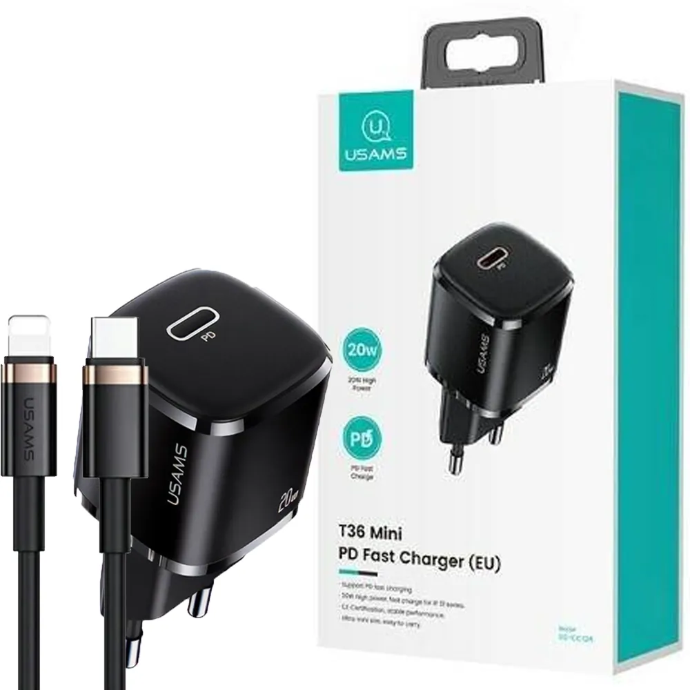 شارژر یوسمز مدل CC124 20W T36 Usams مشکی | اپل3