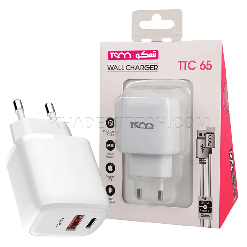 شارژر تسکو مدل TSCO TTC65 20W TYPE-C سفید | اپل3