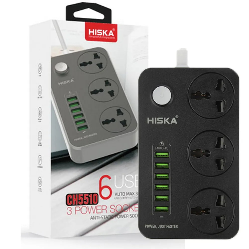 در زندگی روزمره با توجه به افزایش لوازم و ابزارهای الکترونیکی، نیاز به سیستم برق رسانی بیشتری در منزل یا مpل کار خواهیم داشت. همچنین در کنار اینکه نیاز به برق رسانی داریم، باید از برق رسانی ایمن نیز اطمینان خاطر داشته باشیم؛ به همین دلیل امروزه محافظ برقها نیز از اهمیت ویژهای برخوردار هستند که البته نسبت به چندراهیها از قیمت بیشتری برخوردار خواهند بود. استفاده از یک چندراهی برق برای افزایش تعداد لوازم و ابزارهای برقی و همچنین راحتی در دسترسی بسیار کاربردی است. چندراهی برق هیسکا مدل CH5510 دارای 3 عدد پریز روی خود بوده و همچنین با داشتن 6 عدد درگاه USB از کاربرد خوبی در هر محیط که نیاز به شارژ ابزار هوشمند است، برخوردار خواهد شد. یکی از مزیتهایی که برای چندراهی برق هیسکا مدل CH5510 وجود دارد، استفاده از پریز با استاندارد جهانی روی آن بوده که هر دستگاه از هر کجای دنیا با توجه به ساختار متفاوت دوشاخه، به آن متصل شده و جریان برق را برقرار خواهد کرد. بدنه چندراهی برق هیسکا مدل CH5510 مقاومت خوبی در مقابل آتش سوزی دارد که این مورد اطمینان از ایمنی را افزایش میدهد. هر کدام از پورتهای USB دارای 5 ولت بوده و جریان 3و4 آمپر را از خود عبور خواهد داد. همچنین گفتنی است که توان هر پورت معادل 17 وات بوده است. از دیگر ویژگیهای چندراهی برق هیسکا مدل CH5510 دکمه روشن و خاموش است که برای زمان عدم نیاز به آن کاربرد خواهد داشت. به طور مثال در هنگام مسافرت یا عدم حضور در خانه برای اینکه نوسان برق به سیستم برق لوازم آسیب وارد نکند، میتوان آن را خاموش کرد تا در مسیر جریان برق نباشد.