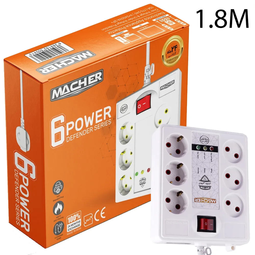 محافظ برق 1.8M 6Port ارت دار MR226 | اپل3