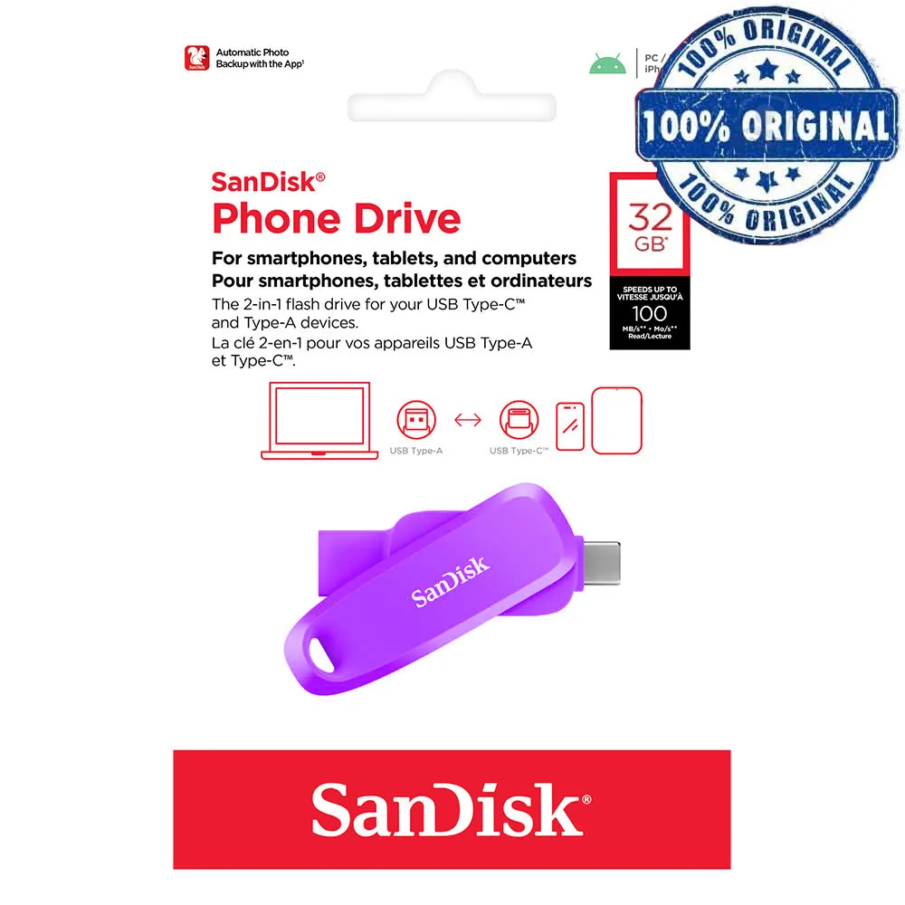 فلش سندیسک SANDISK DC6 TYPE-C 32G بنفش | اپل3