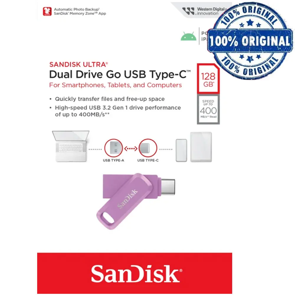 فلش سندیسک SANDISK USB3.0 GO TYPE-C 128G بنفش | اپل3