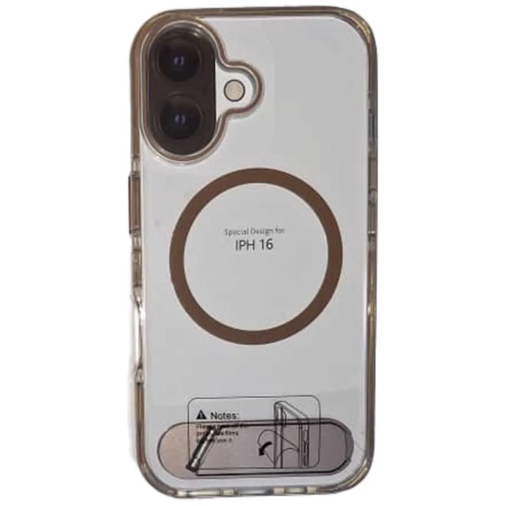 قاب اپل استند دار مدل IPHONE 16 شفاف قهوه ای | اپل3