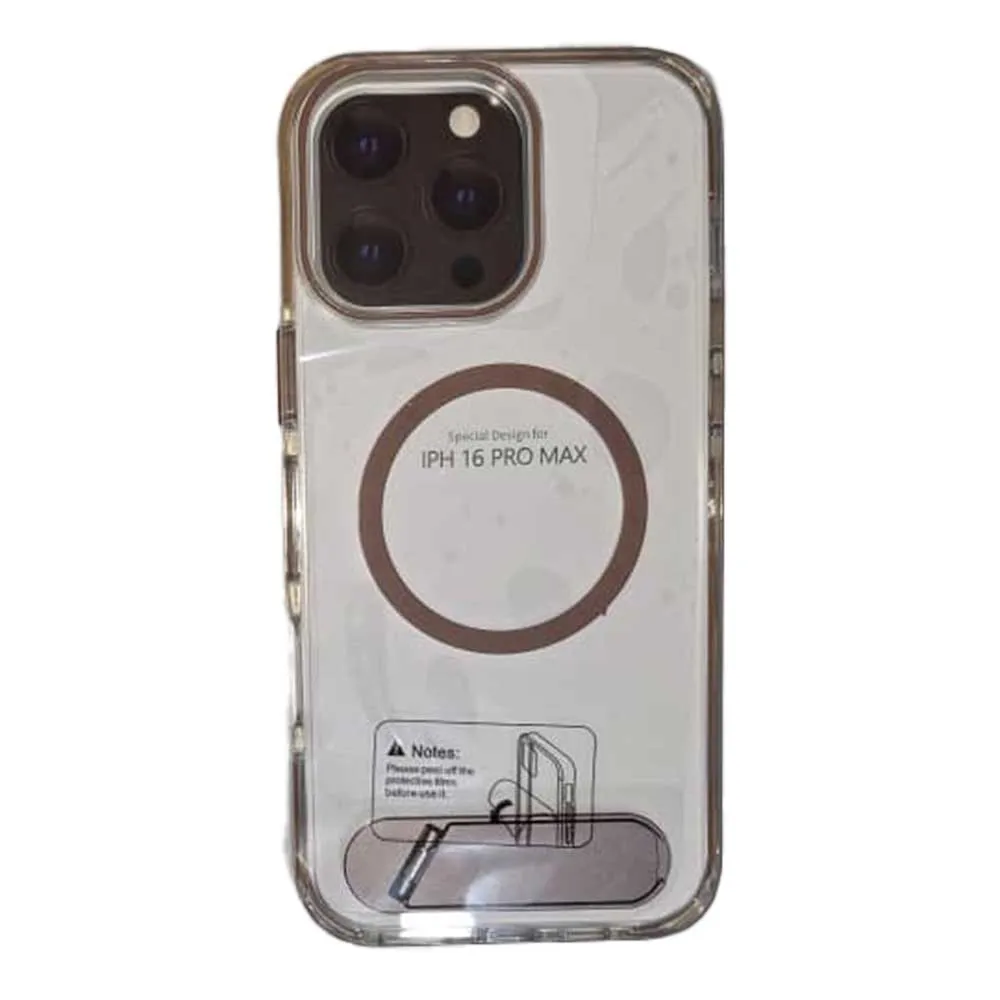 قاب اپل استند دار مدل IPHONE 16ProMax شفاف قهوه ای | اپل3