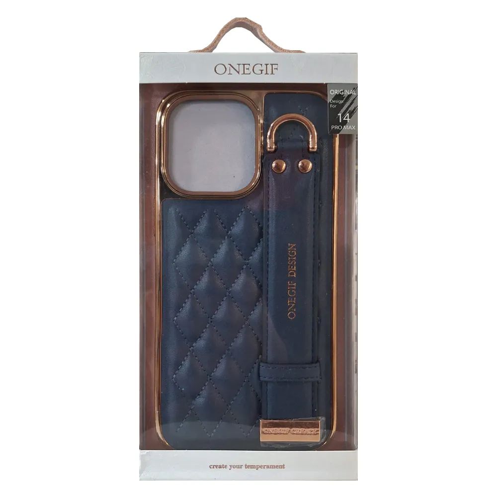 قاب اپل بنددار IPHONE 14 Pro Max ONEGIF چرم سرمه ای | اپل3