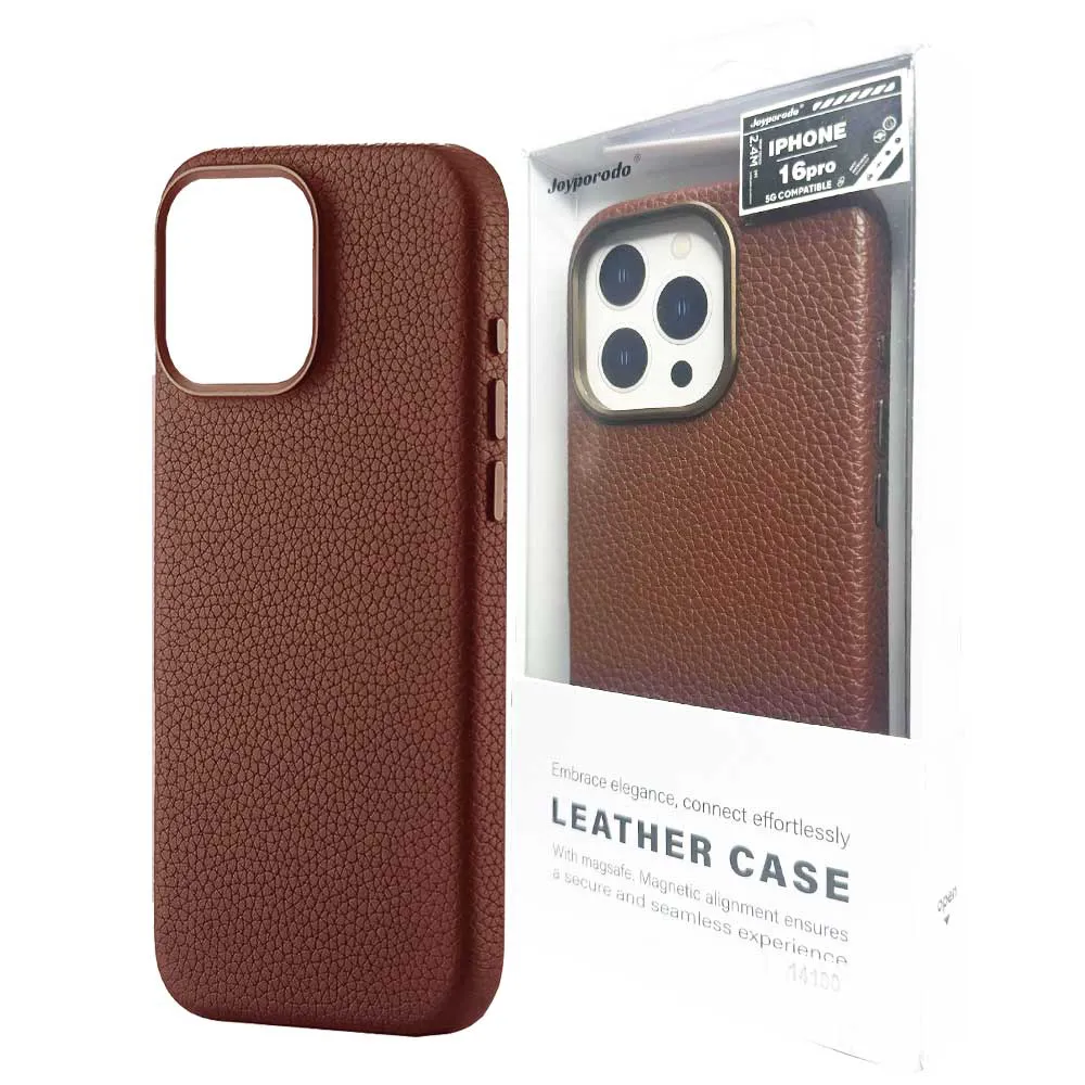 قاب اپل چرمی مدل Joyporodo IPHONE 16Pro قهوه ای | اپل3