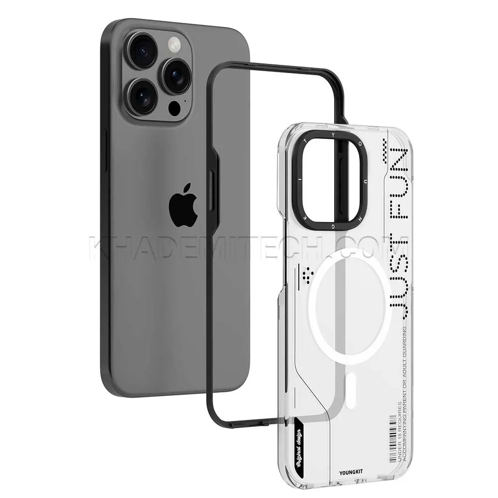 قاب اپل یانگ کیت مدل YOUNGKIT IPHONE 16 ProMax شفاف مشکی | اپل3