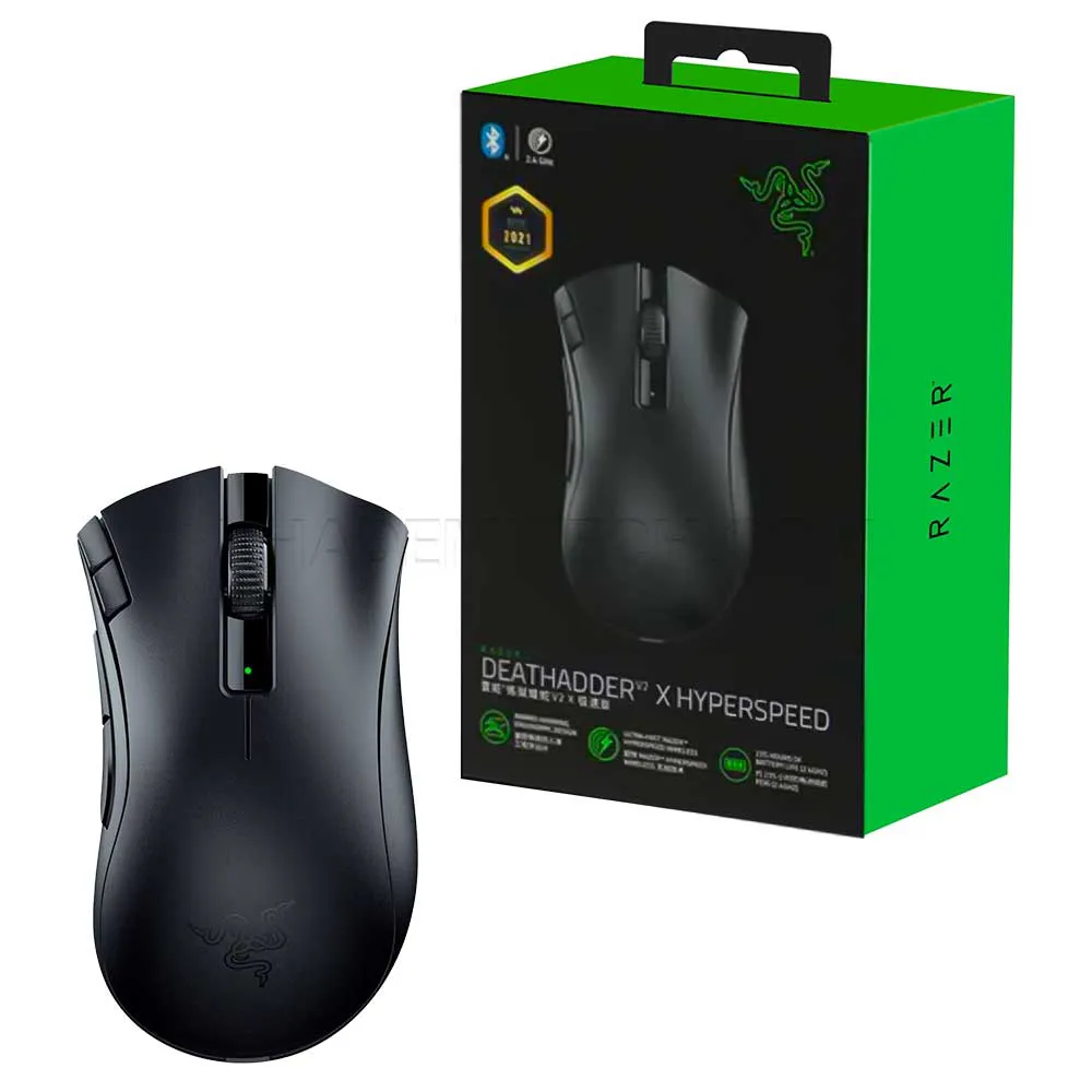 113021902موس Razer Deathadder V2 X HyperSpeed از سوییچهای مکانیکی جدید Razer با روکش طلایی در نقطه اتصال بهره میبرد تا در لحظات پرفشار بازی مقاومت بیشتری داشته باشد. سوییچهای جدید این موس با طول عمر 60 میلیون کلیک خیال شما را برای مدت طولانی از عملکرد دکمهها راحت میکنند.سنسور اپتیکال موس Razer Deathadder V2 X HyperSpeed با دقت 14000 dpi، سرعت تشخیص حرکت 300 اینچ برثانیه و حداکثر شتاب 35 G کوچکترین حرکات دست شما در بازی را تشخیص خواهد داد.موس Razer Deathadder V2 X HyperSpeed از تکنولوژی اتصال بیسیم Razer HyperSpeed بهره میبرد. این تکنولوژی بیسیم 2.4 GHz در سریعترین زمان ممکن تمام حرکات و دستورات شما را به سیستم منتقل میکند تا پتانسیل واقعیتان را در بازیهای رقابتی نمایش دهید.درکنار سرعت اتصال باورنکردنی، تکنولوژی HyperSpeed با مصرف بهینه انرژی عمر باتری موس را طولانیتر کرده و به حداقل 235 ساعت میرساند. موس Razer Deathadder V2 X HyperSpeed از اتصال بلوتوث هم بهره میبرد و میتوانید با استفاده از این اتصال بیسیم، عمر باتری آن را به 615 ساعت افزایش دهید.