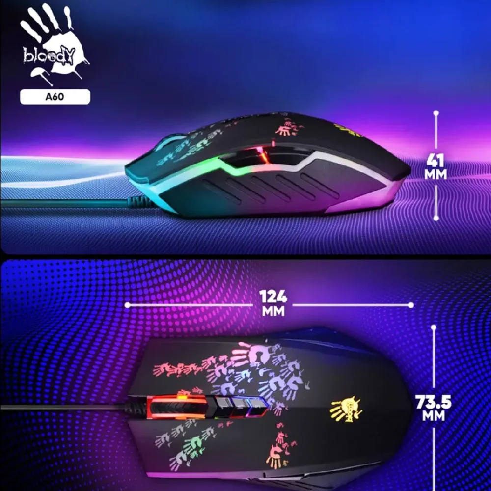 ماوس سیم دار گیمینگ ایفورتک مدل A4TECH BLOODY A60 | اپل3