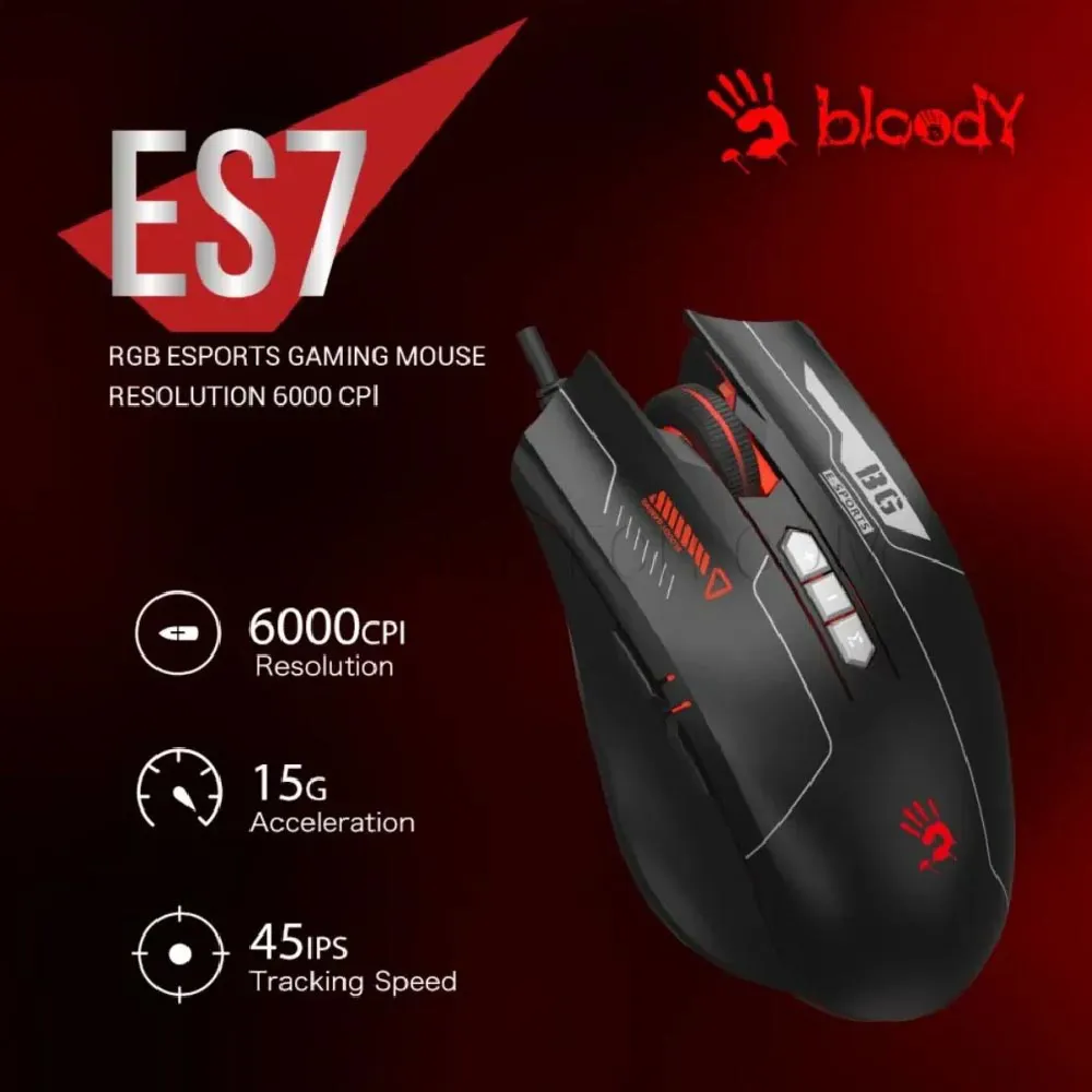 ماوس سیم دار گیمینگ ایفورتک مدل A4TECH BLOODY ES7 | اپل3