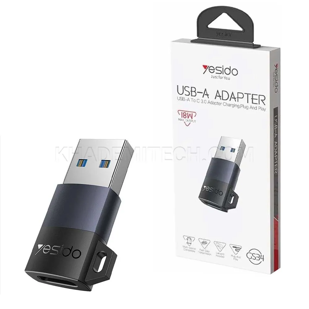 مبدل یسیدو مدل Yesido GS34 OTG USB-A To USB-C | اپل3