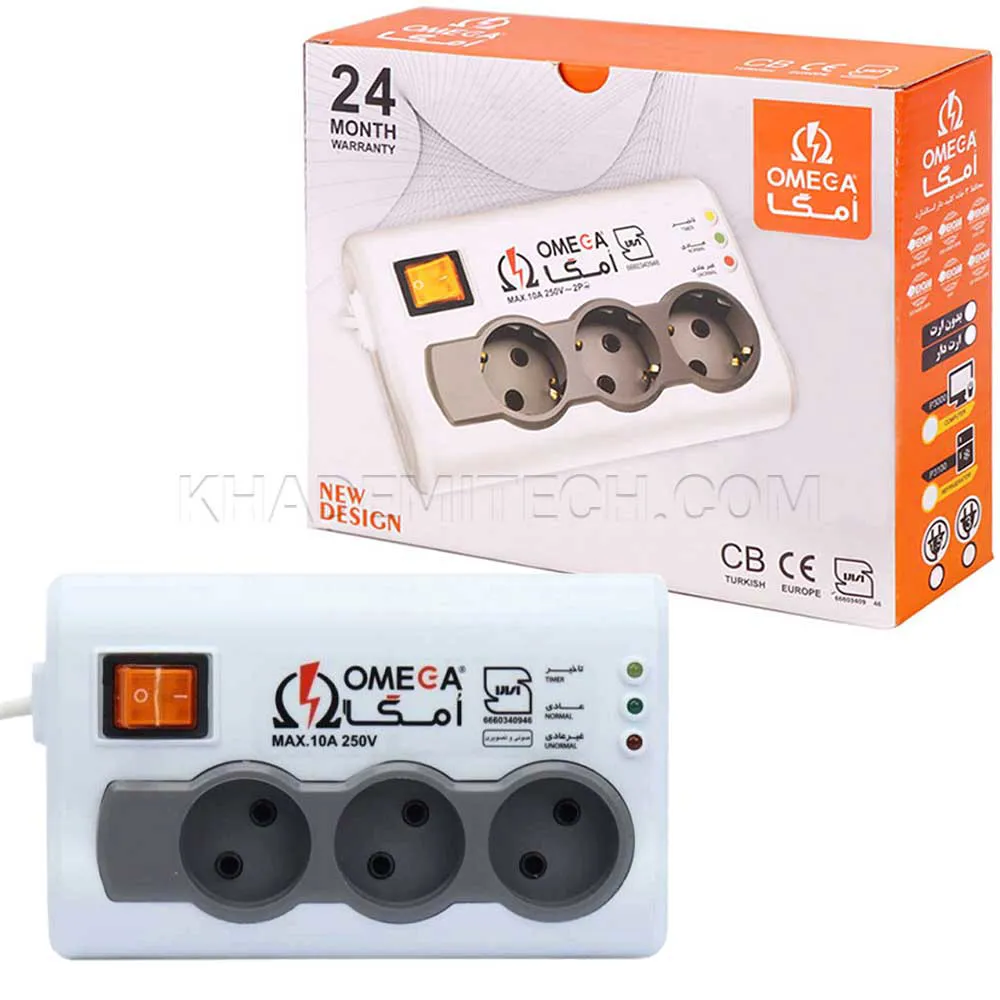 محافظ برق سه خانه امگا مدل OMEGA P3000 3M بدون ارت | اپل3