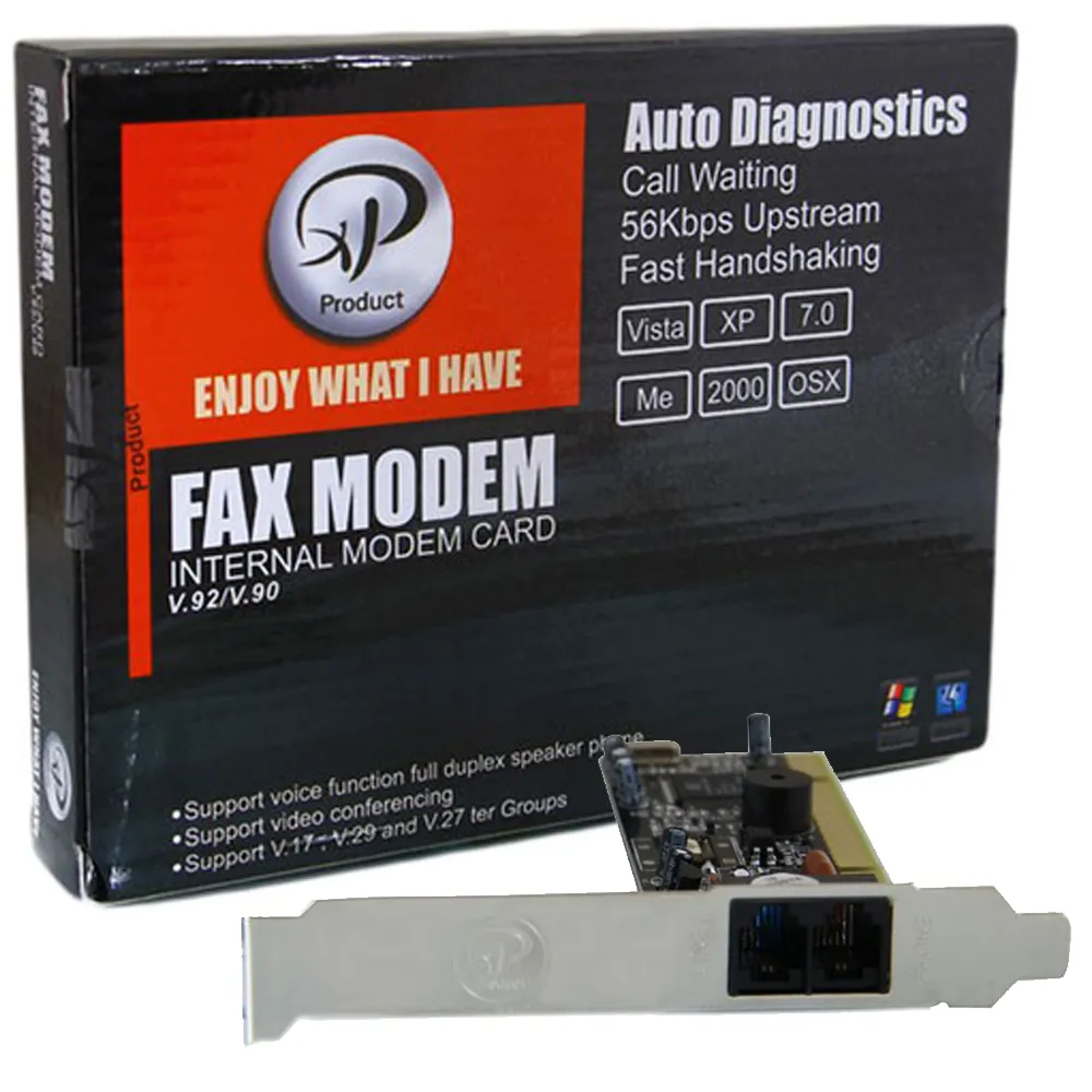 پشتیبانی از عملکرد صدا بلندگو دوطرفه پشتیبانی از voice کنفرانس اتصال از طریق اسلات PCI پشتیبانی از استاندارد ITU-T V.۹۲/۹۰ ۵۶,۰۰۰bps محافظ جریان برای جلوگیری از ورود جریان بالا به داخل مادربرد قابل نصب بر روی ویندوز و مک اتصال به اینترنت بصورت Dial-up