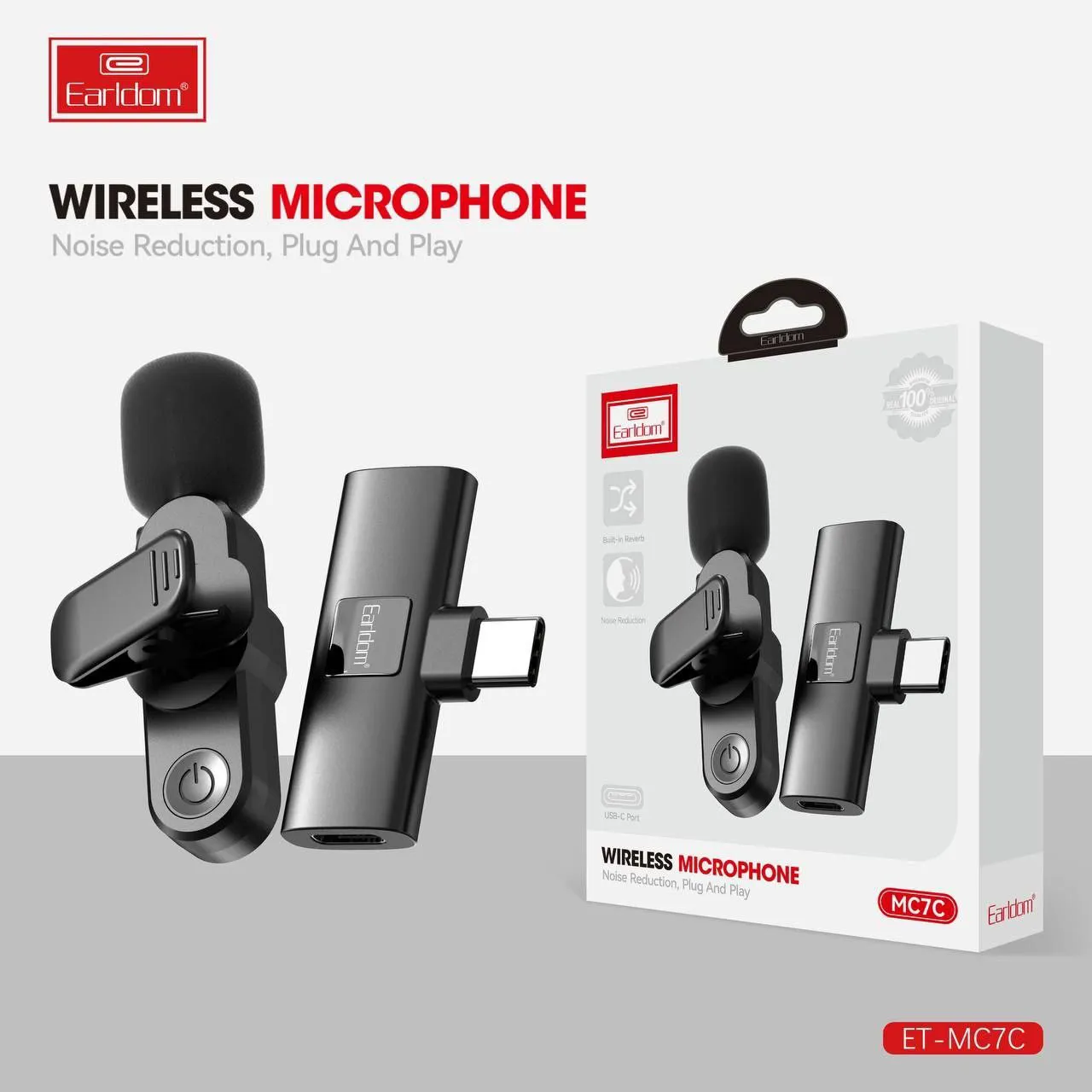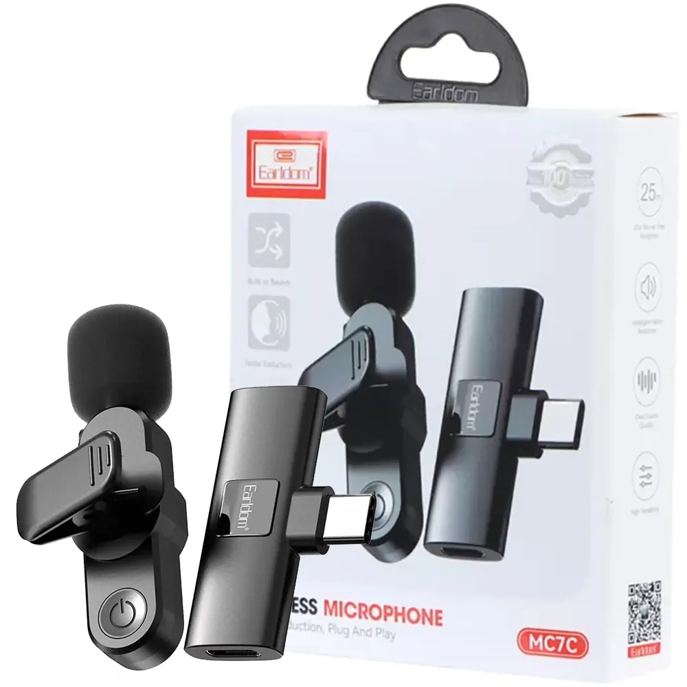 میکروفون بی سیم Earldom Type-C مدل MC7C دارای توری ضد باد، نشانگر، پورت شارژ، گیره ، کلید سوئیچ، پورت برای اتصال تلفن، نشانگر گیرنده، پورت گیرنده، سوراخ طناب می باشد. مناسب کسانی که تولید محتوا انجام می دهند.113027603