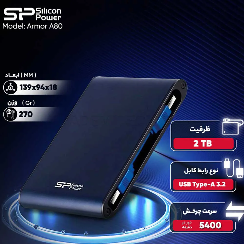 هارد اکسترنال سیلیکون پاور مدل Silicon Power Armor A80 2TB مشکی | اپل3