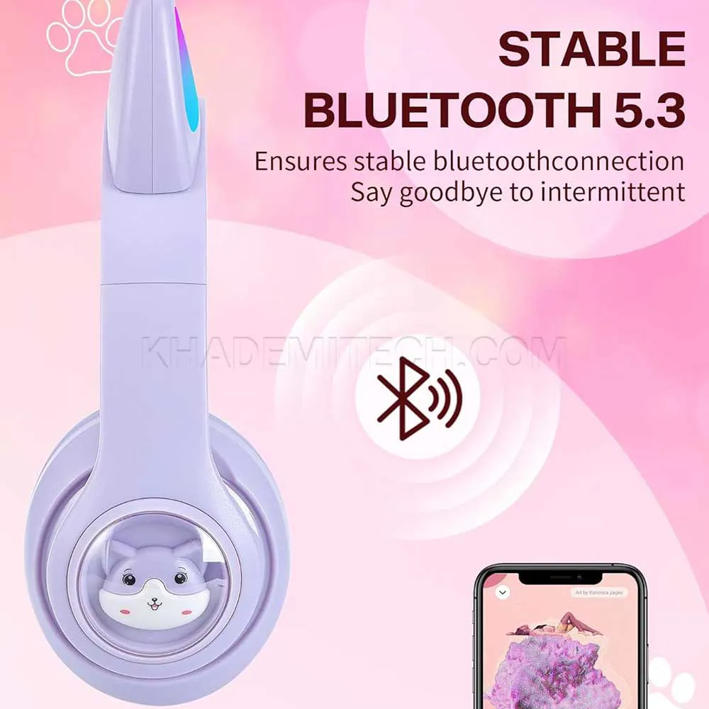 هدست بی سیم فانتزی طرح گربه مدل CAT EAR STN-28T آبی | اپل3