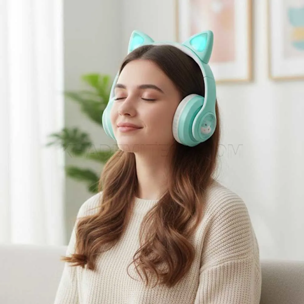 هدست بی سیم فانتزی طرح گربه مدل CAT EAR STN-28T سبز | اپل3