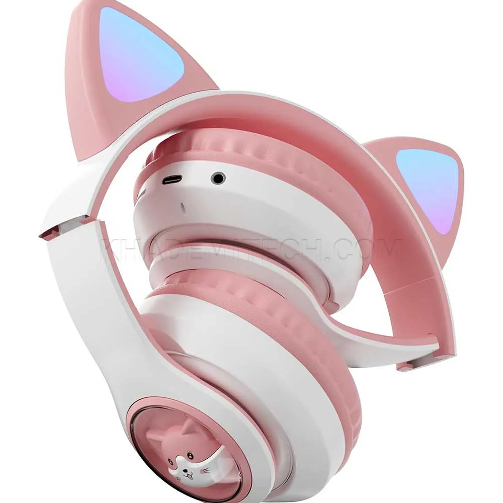 هدست بی سیم فانتزی طرح گربه مدل CAT EAR STN-28T صورتی | اپل3