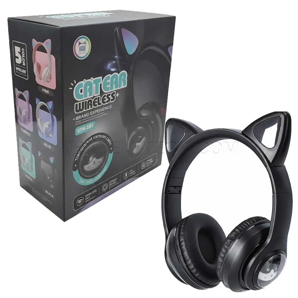 هدست بی سیم فانتزی طرح گربه مدل CAT EAR STN-28T مشکی | اپل3