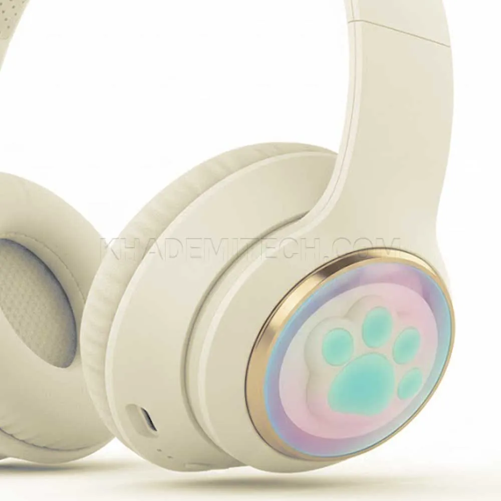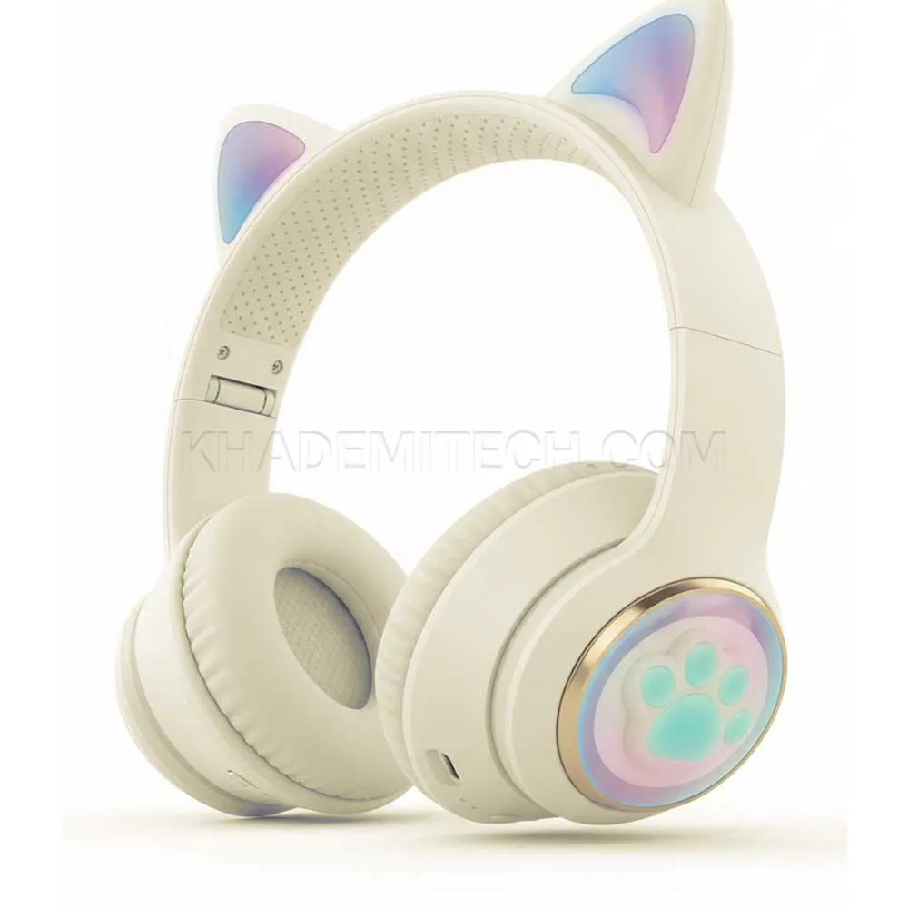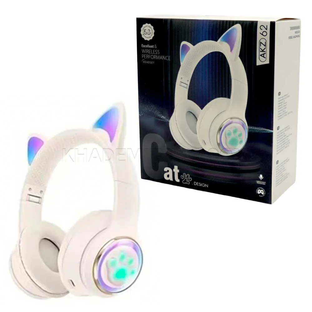 هدست بی سیم فانتزی طرح گربه مدل Wireless AKZ 62 کرمی | اپل3