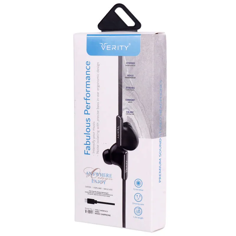 هندزفری سیم دار V-E91Tمشکی VERITY | اپل3