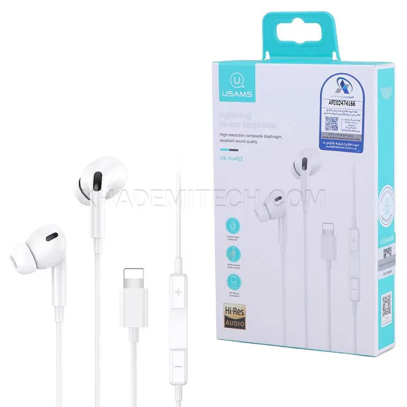 هندزفری یوسمز مدل Usams US-SJ453 Lightning سفید | اپل3