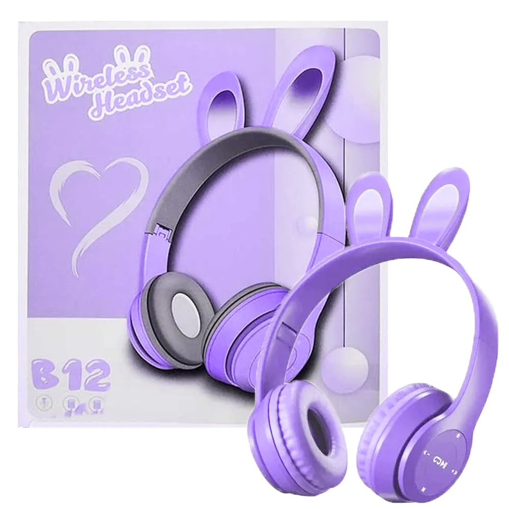 هدست بلوتوثی رم خور B12 خرگوشی بنفش | اپل3