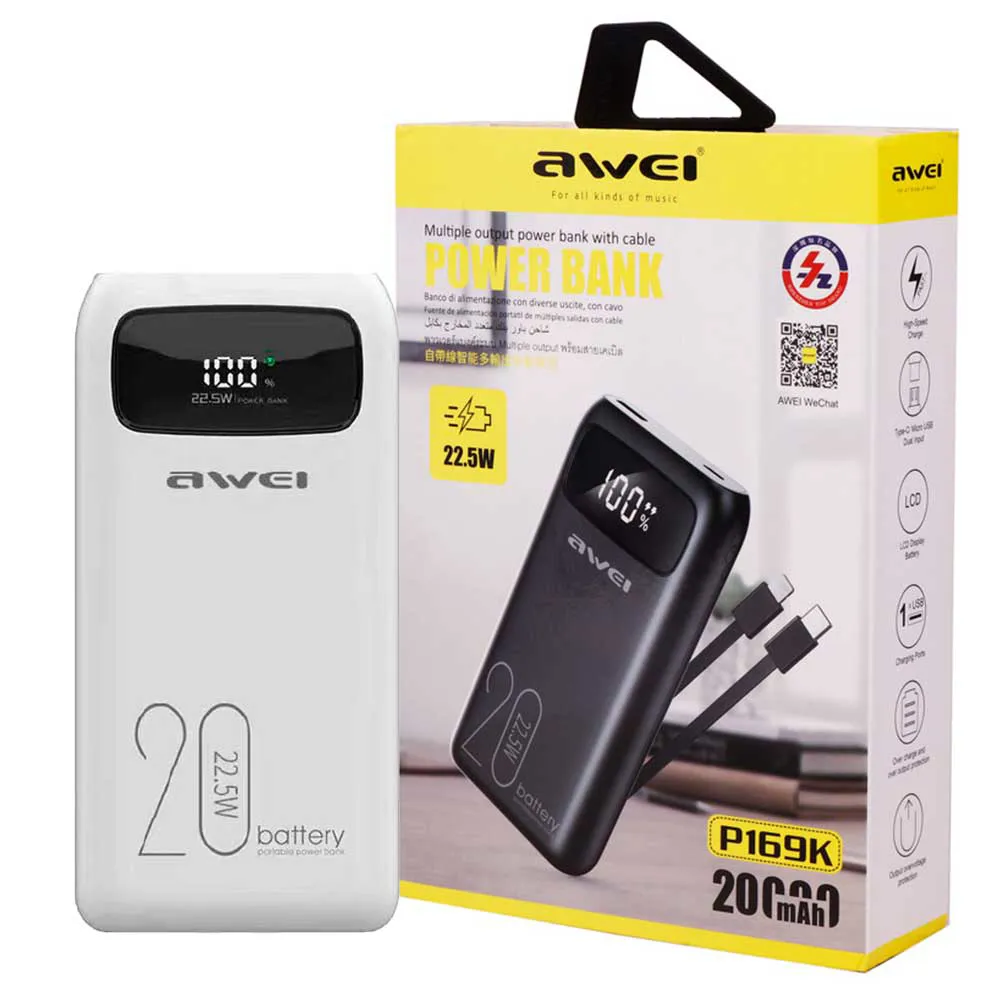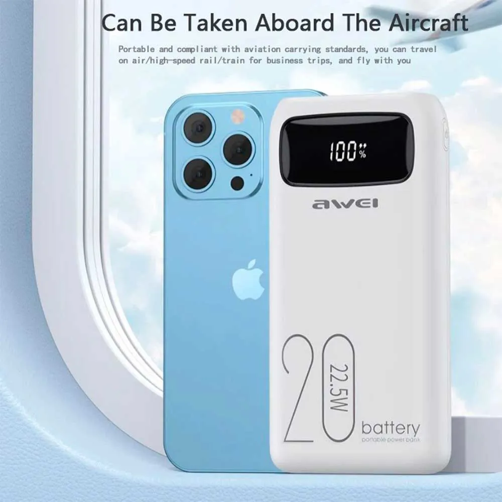 پاوربانک اوی مدل AWEI P169K 20000mah سفید | اپل3