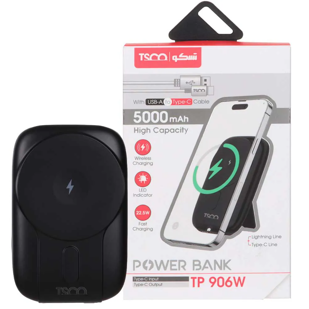 پاوربانک مگ سیف تسکو مدل TSCO TP906W 5000mAh مشکی | اپل3