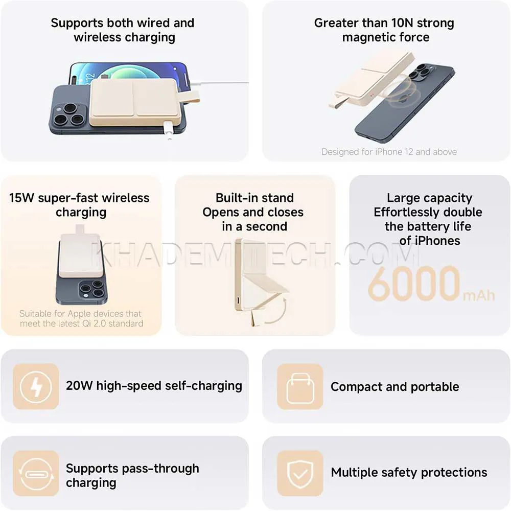 پاوربانک مگ سیف شیائومی مدل MI MAGNETIC 6000mAh سفید | اپل3
