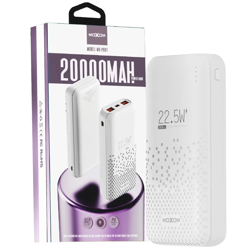 پاوربانک موکسوم مدل MOXOM MX-PB97 22.5W 20000mah سفید | اپل3