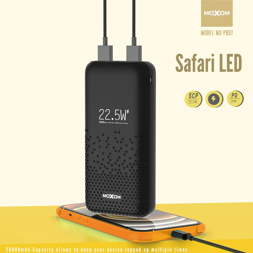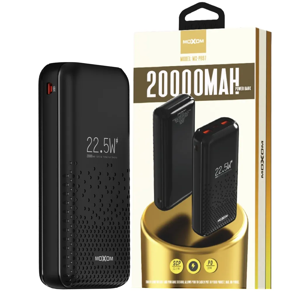 پاوربانک موکسوم مدل MOXOM MX-PB97 22.5W 20000mah مشکی | اپل3
