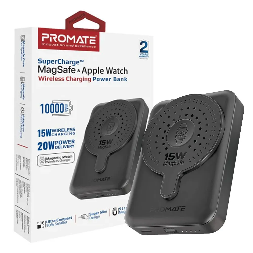 پاوربانک مگ سیف پرومیت مدل PROMATE POWERMAG-DUO 10000mAh مشکی | اپل3