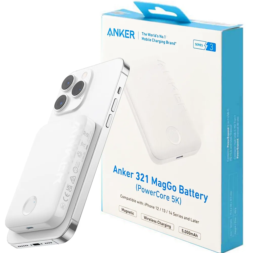 پاوربانک مگ سیف انکر مدل 321 5000mAh سفید A1616H21 ANKER | اپل3