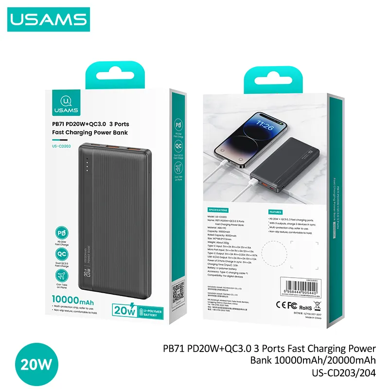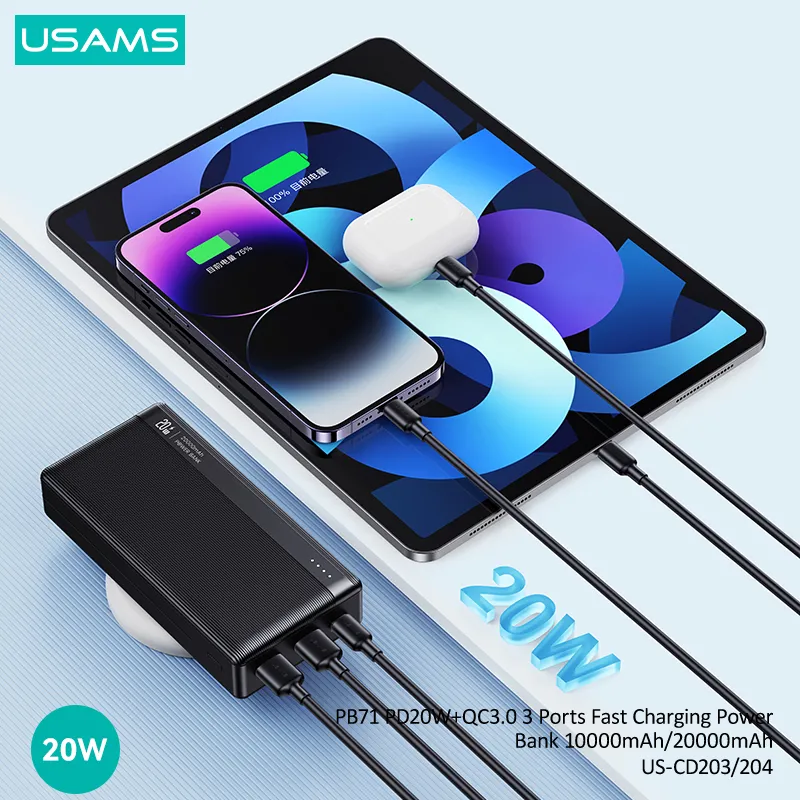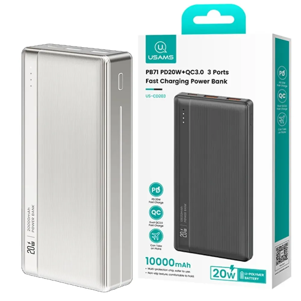 پاوربانک یوسمز مدل CD203 20W 10000mAh Usams سفید | اپل3
