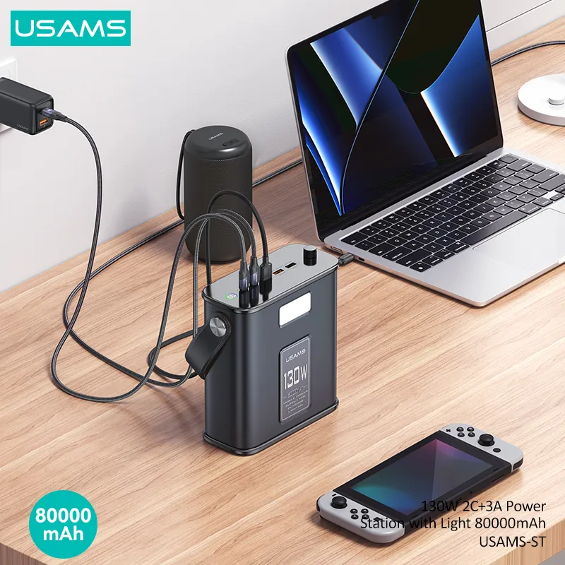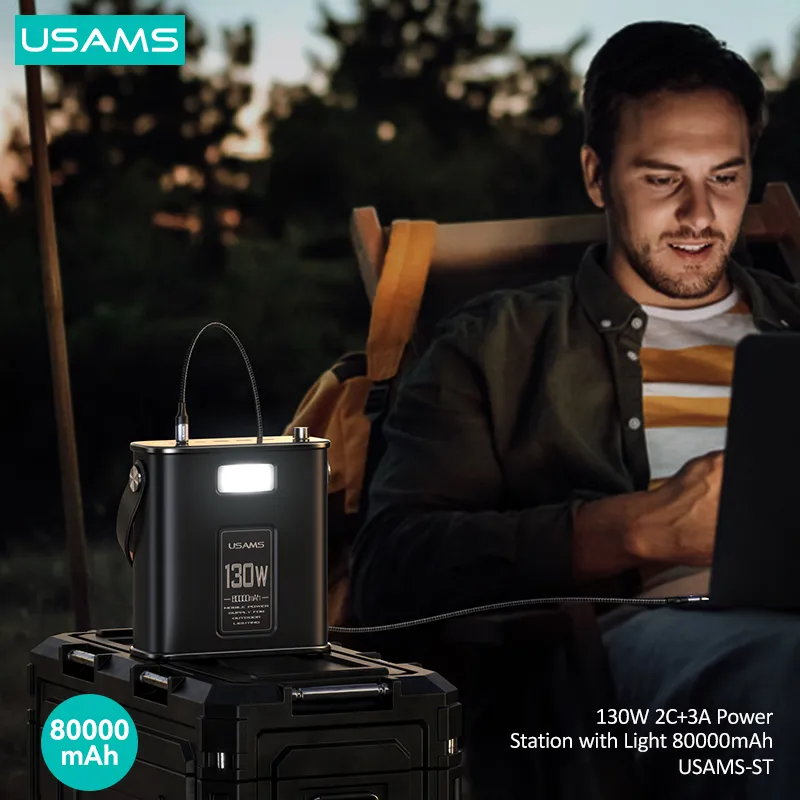 - نام کامل کالا : USAMS 130W 2C_3A Power Station with Light 80000mAh Power Bank USAMS-ST