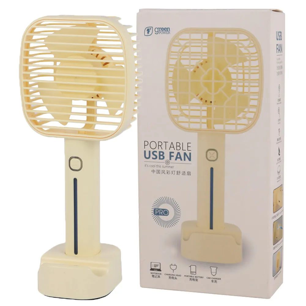 پنکه دستی شارژی NB-24پایه مربعی زرد | اپل3
