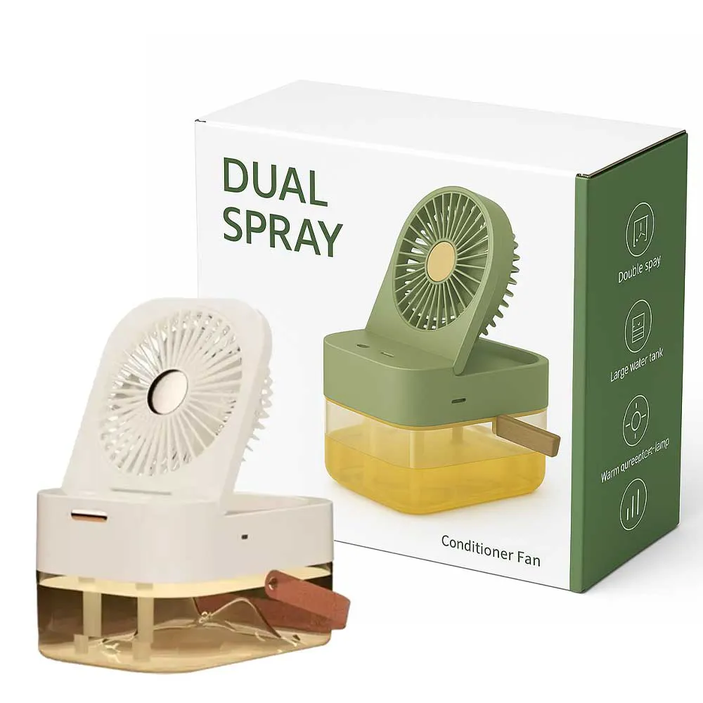 پنکه رومیزی دبل مه پاش ریموت دار مدل DUAL-SPRAY-NIGHT کرمی | اپل3