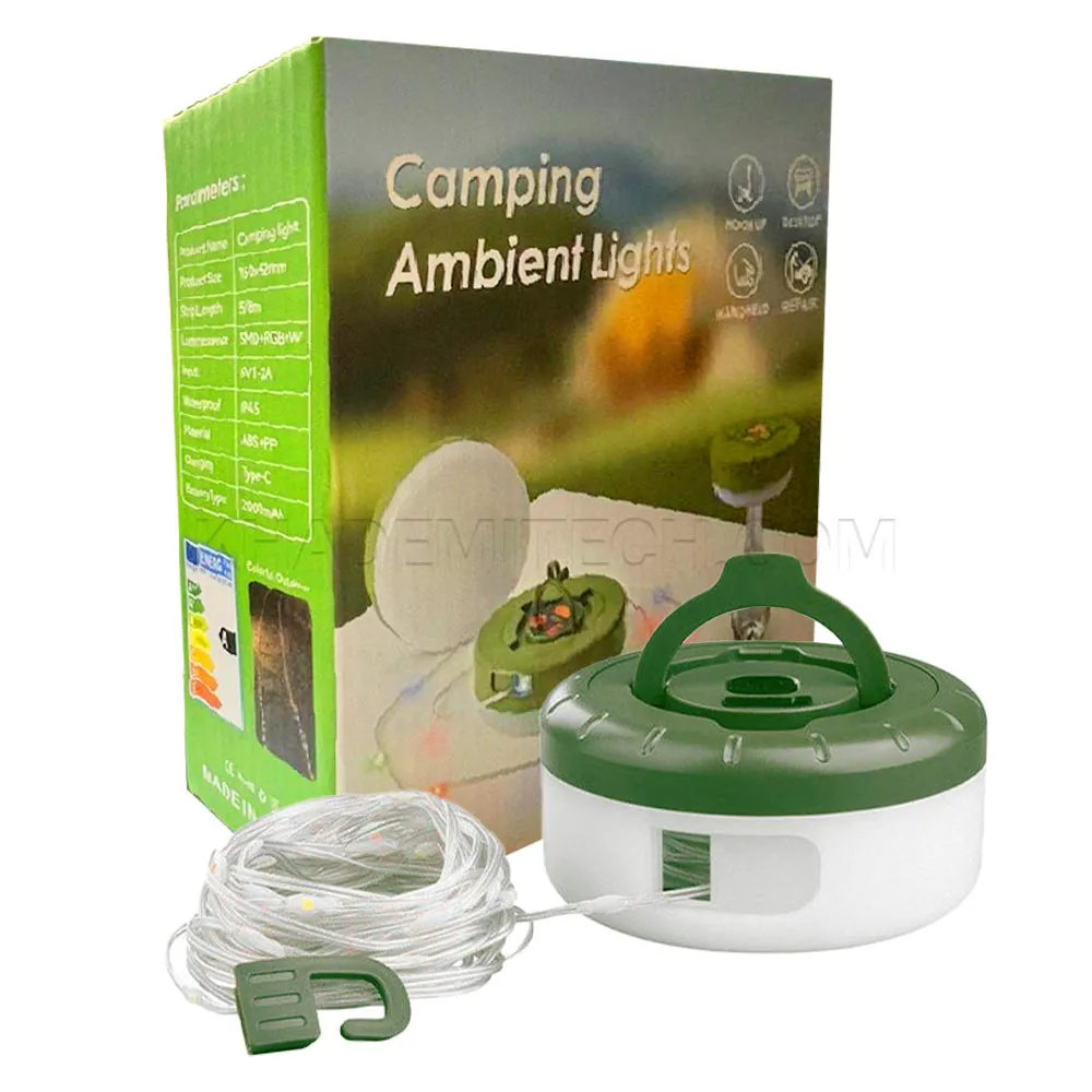 چراغ شارژی ریسه ای مدل Camping Lights MY-618RGB+W سبز | اپل3